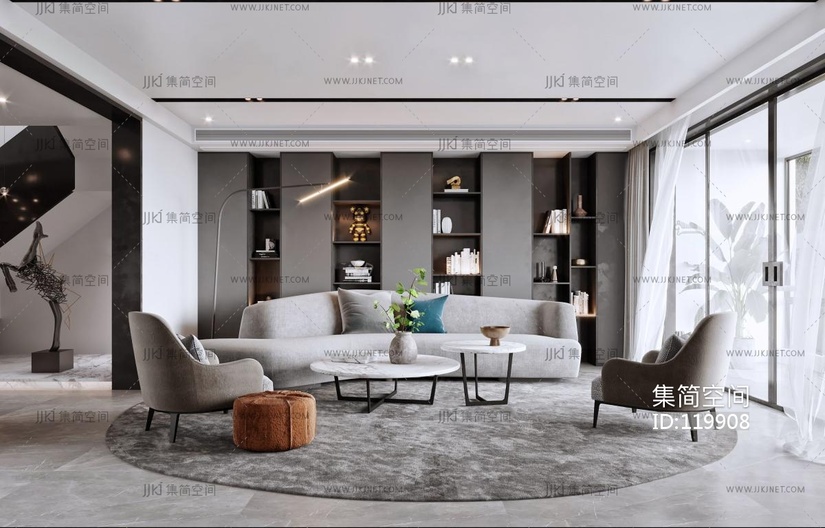 现代简约客厅 3d模型下载 [模型ID:119908]