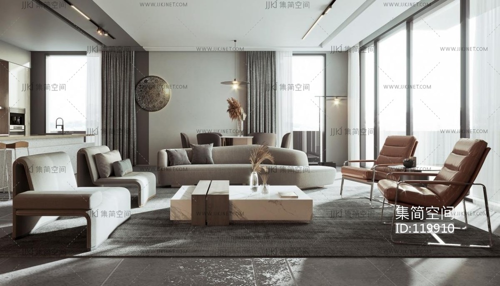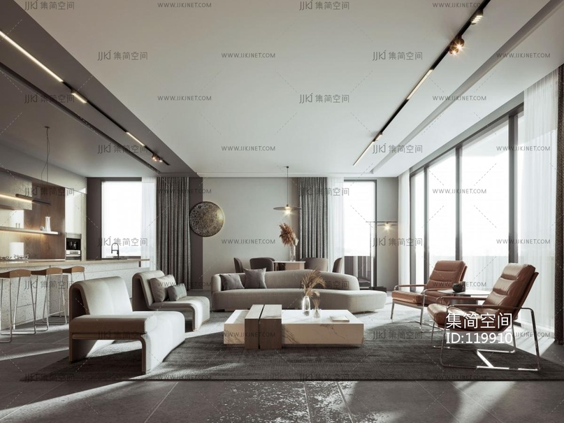 现代简约客厅 3d模型下载 [模型ID:119910]
