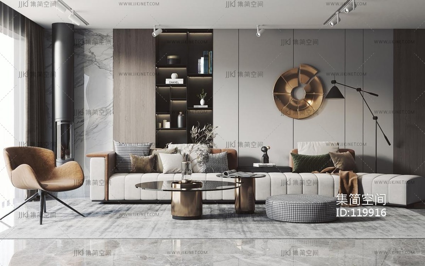 现代简约客厅 3d模型下载 [模型ID:119916]