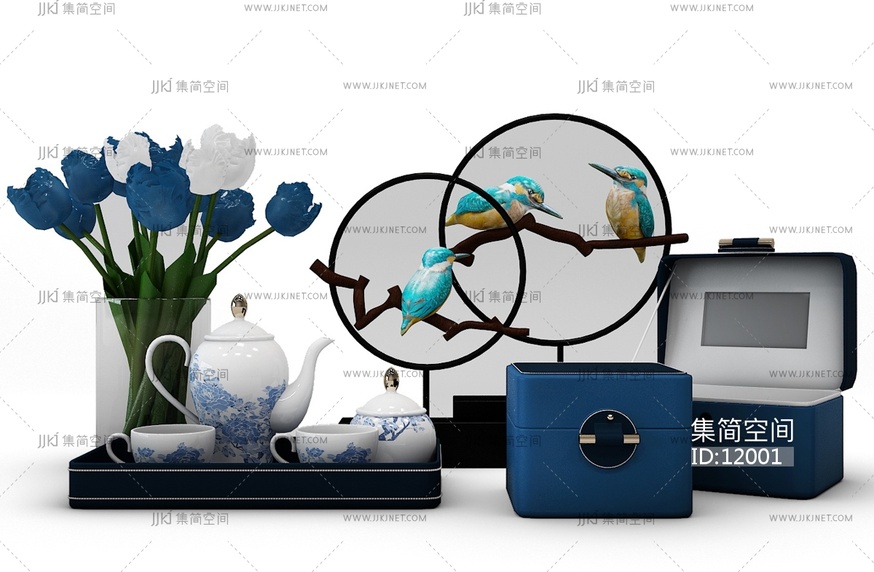 现代新中式雕塑摆件_饰品摆件组合3D模型3d模型下载