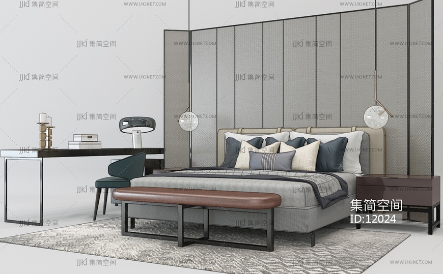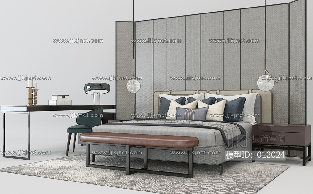 Z34-1119现代轻奢床写字台 3d模型下载 [模型ID:12024]