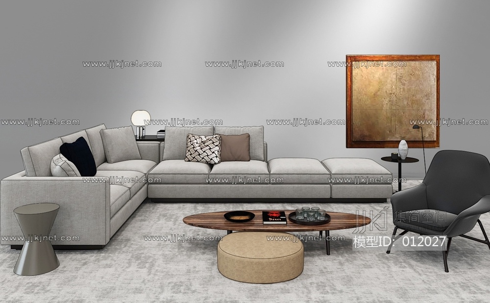 现代布艺转角沙发组合3d模型下载