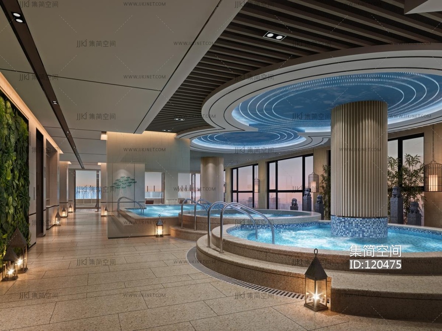 新中式酒店洗浴中心泡池 3d模型下载 [模型ID:120475]
