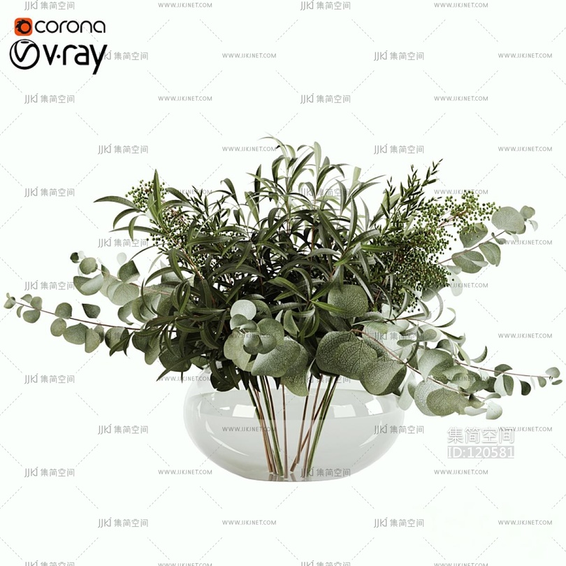 现代玻璃花瓶绿植 3d模型下载 [模型ID:120581]