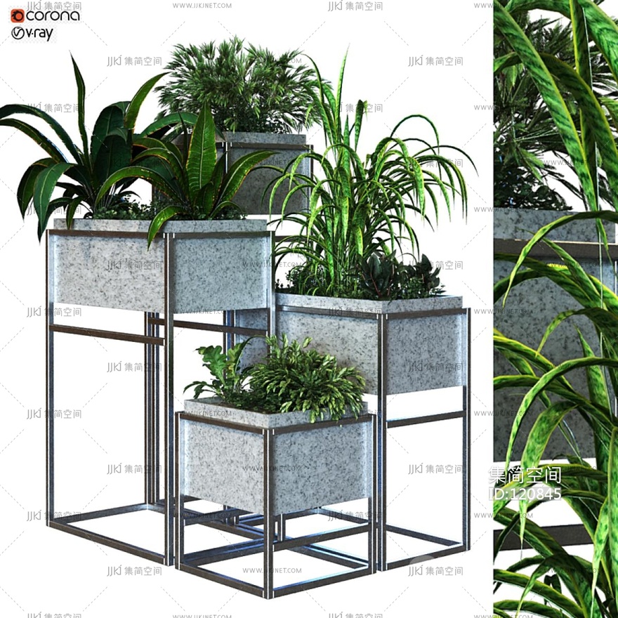 现代绿植盆栽,铁艺花池花槽花架 3d模型下载 [模型ID:120845]