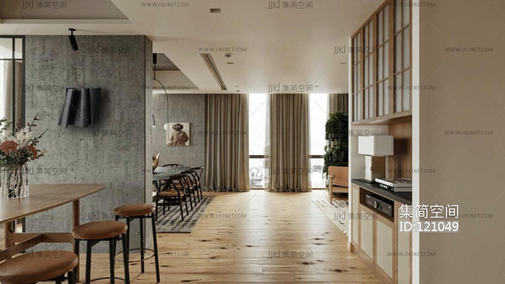 现代公寓客餐厅,餐桌椅 3d模型下载 [模型ID:121049]