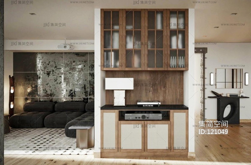 中古风客厅 沙发茶几组合 背景墙3d模型下载
