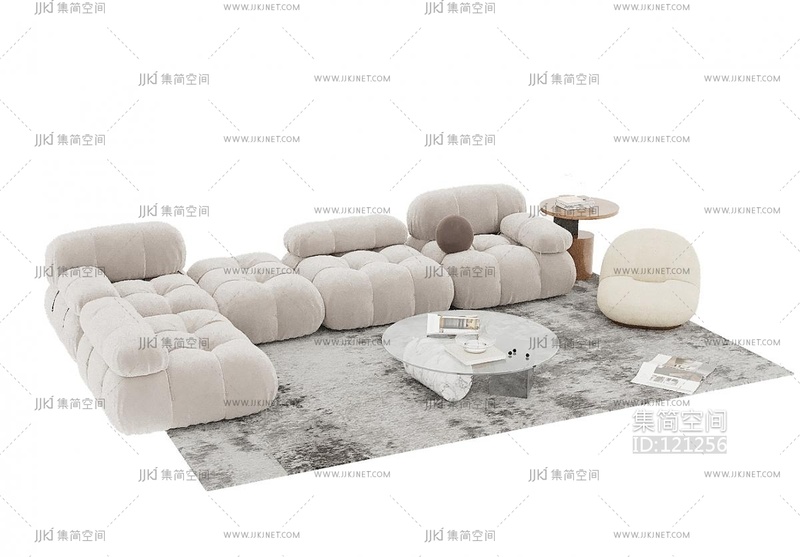 03-奶油中古沙发组合_沙发茶几组合_异形沙发_金属茶几_单人休闲椅_模块沙发3D模型3d模型下载