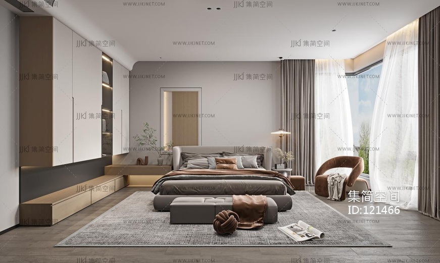 6法式中古家居卧室_主卧_飘窗卧室_高级灰卧室3D模型cr3d模型下载