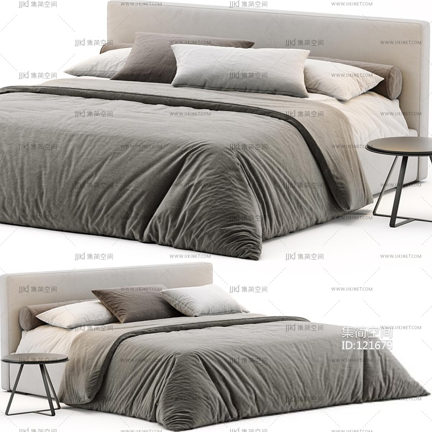 现代布艺双人床,圆形边几 3d模型下载 [模型ID:121679]
