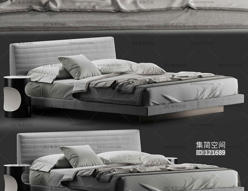 03-ITALINI现代布艺双人床3D模型3d模型下载