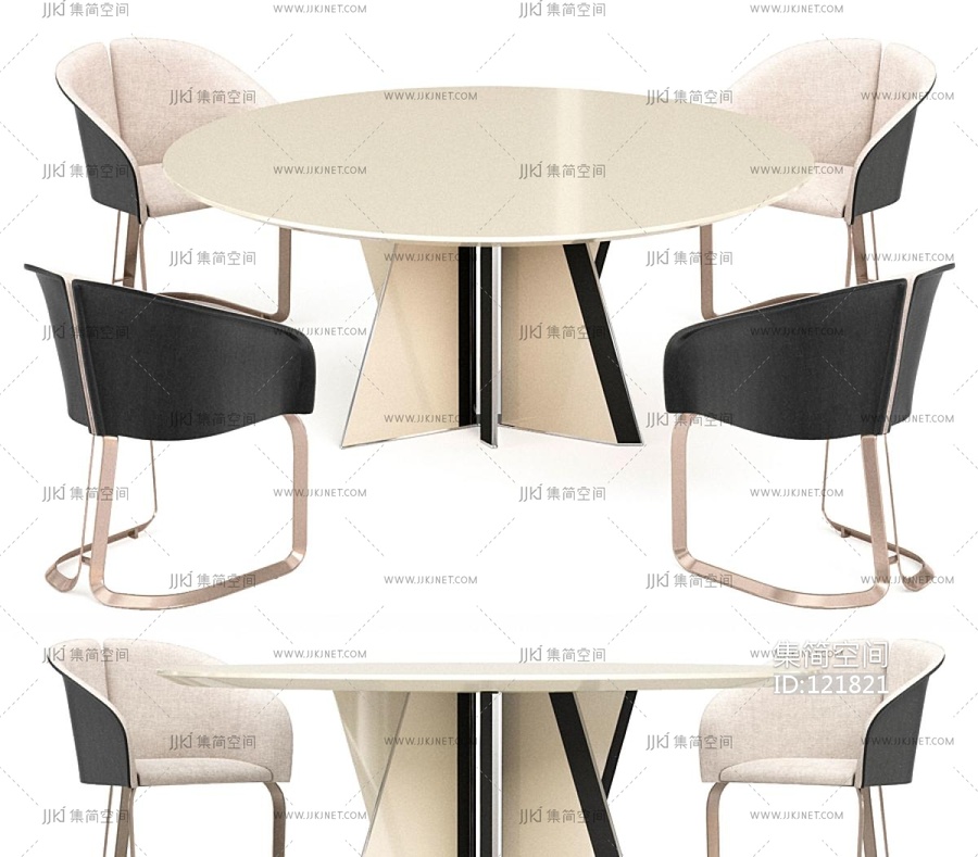 34现代布艺休闲椅,圆形餐桌椅c=v 3d模型下载 [模型ID:121821]