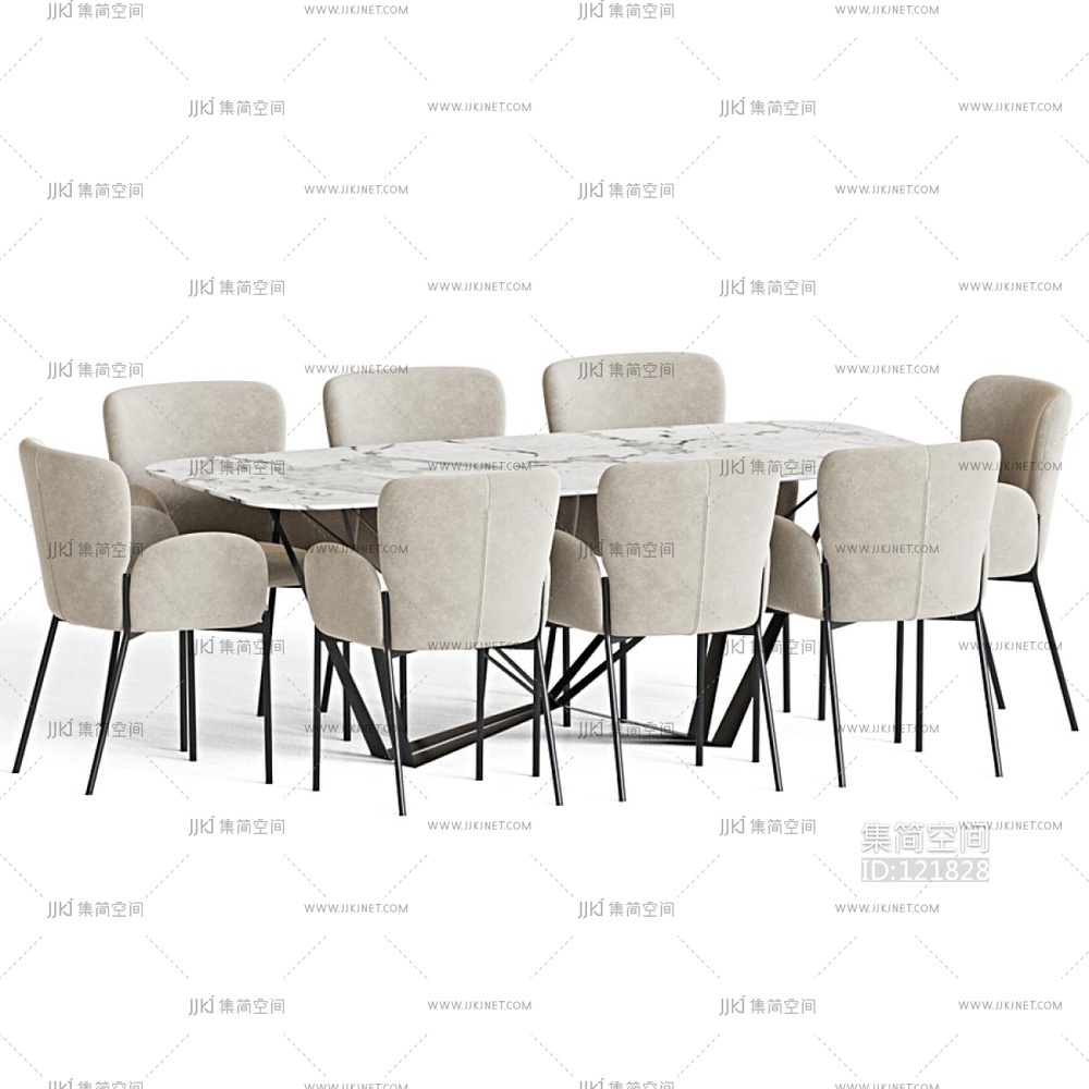 现代餐桌椅组合3D模型3d模型下载