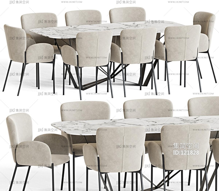 -现代条形餐桌椅 3d模型下载 [模型ID:121828]