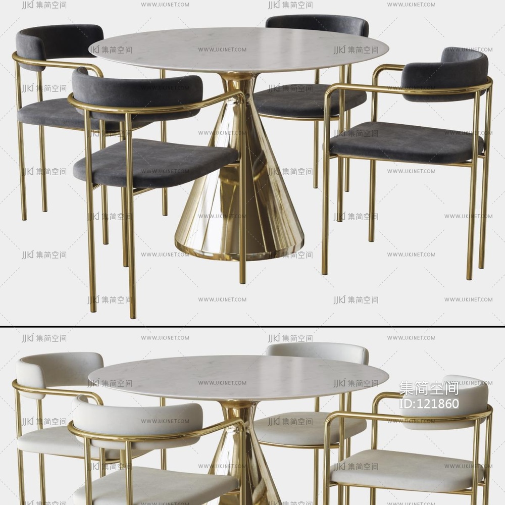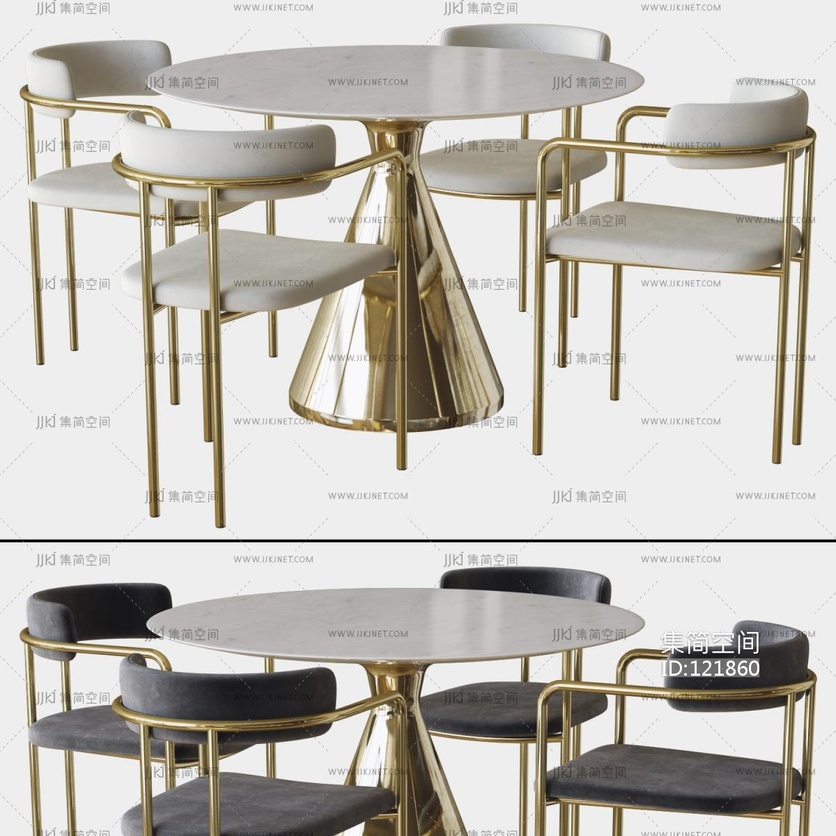 enox 轻奢圆形铁艺餐桌椅 3d模型下载 [模型ID:121860]