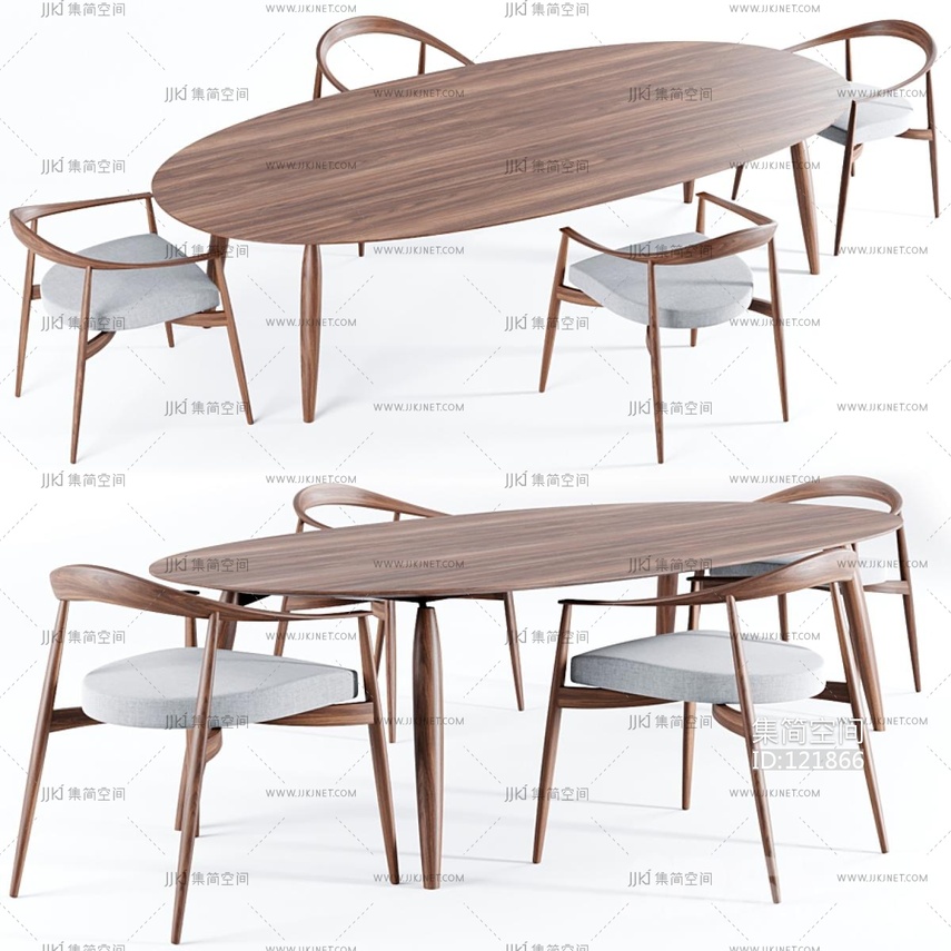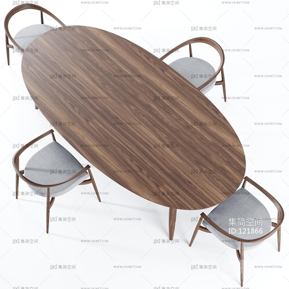 北欧原木椭圆餐桌椅Natevo 3d模型下载 [模型ID:121866]