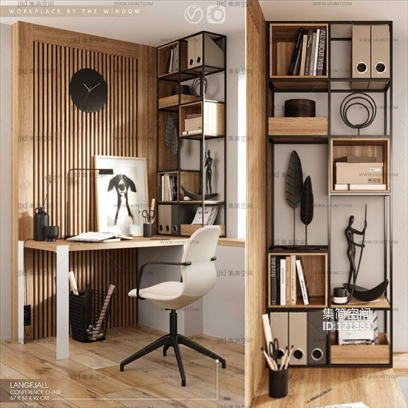 宜家书桌椅,学习桌写字台,书架羽毛,装饰品 3d模型下载 [模型ID:121883]
