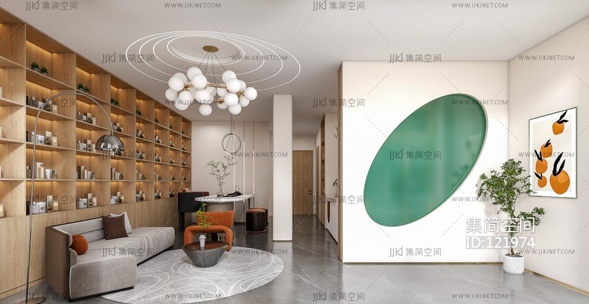 20现代,诧寂风,美容院,SPA大厅,球形吊灯 3d模型下载 [模型ID:121974]