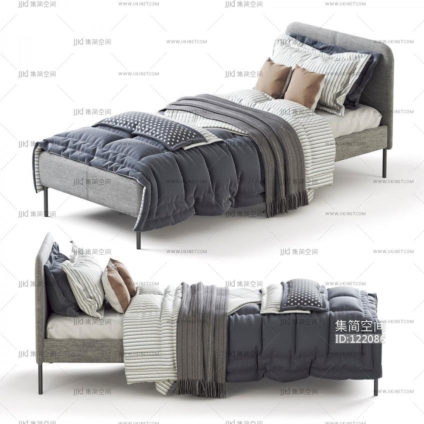 现代单人床,儿童床 3d模型下载 [模型ID:122086]