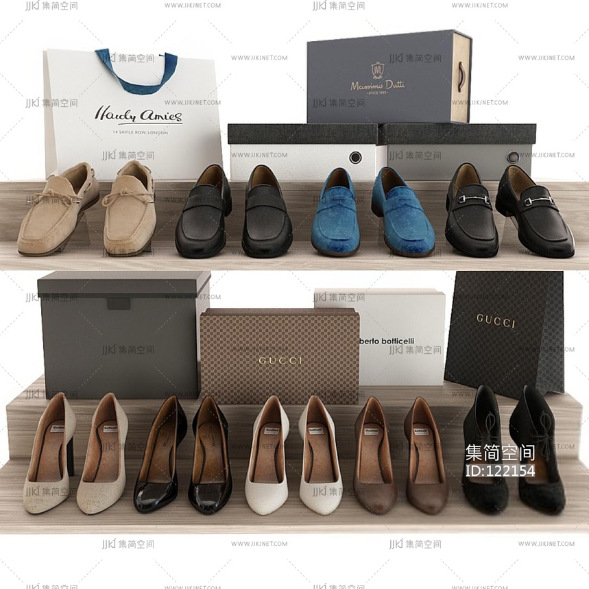 现代鞋子,男鞋高跟鞋,皮鞋 3d模型下载 [模型ID:122154]