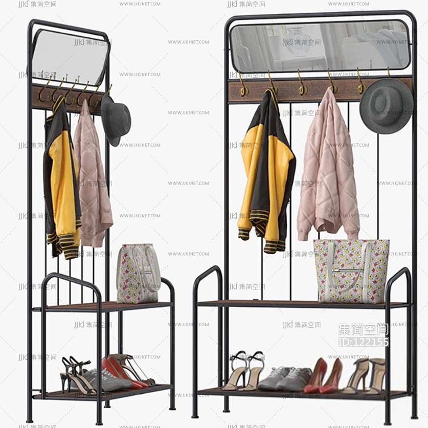 现代玄关鞋架衣架,服装店展架,高跟鞋 3d模型下载 [模型ID:122155]
