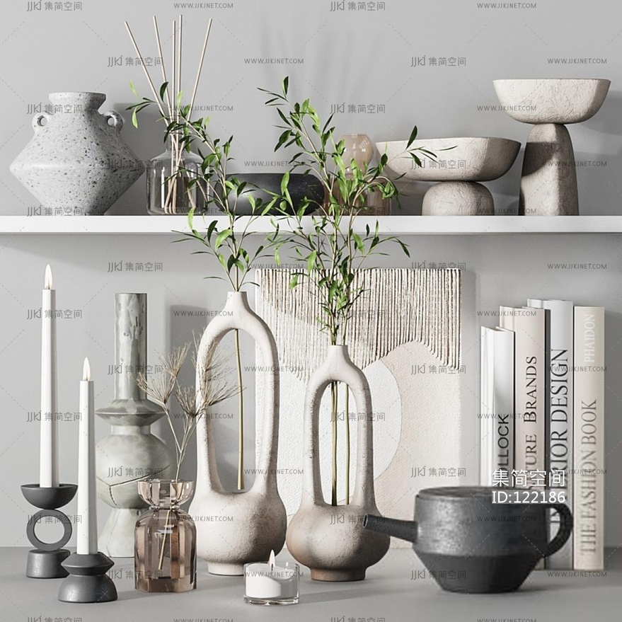 22侘寂风书籍饰品摆件,瓶罐饰品v 3d模型下载 [模型ID:122186]