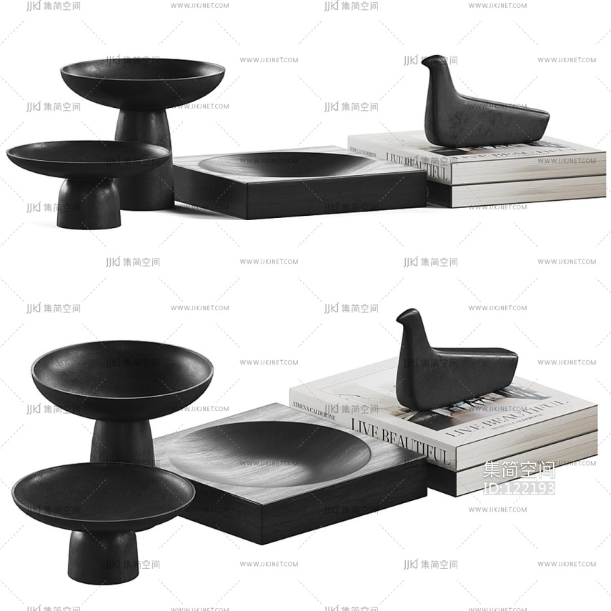 现代新中式雕塑摆件_饰品摆件组合3D模型3d模型下载