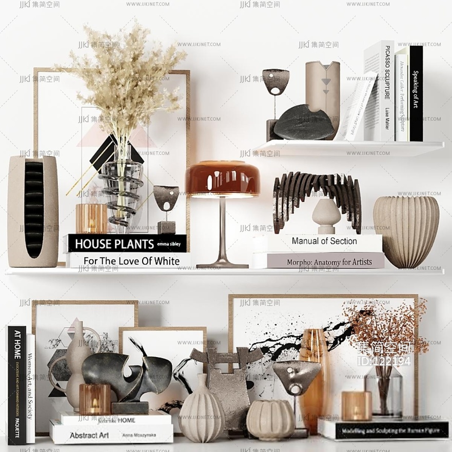 现代装饰品摆件_书籍_花瓶3D模型3d模型下载