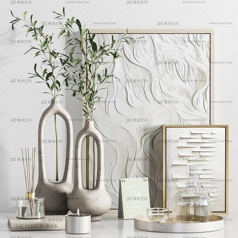 现代装饰品摆件_书籍_花瓶3D模型3d模型下载