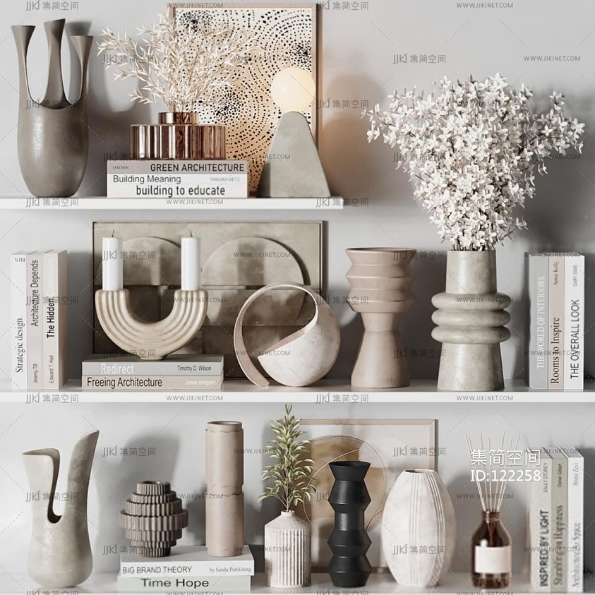 现代装饰品摆件_书籍_花瓶3D模型3d模型下载
