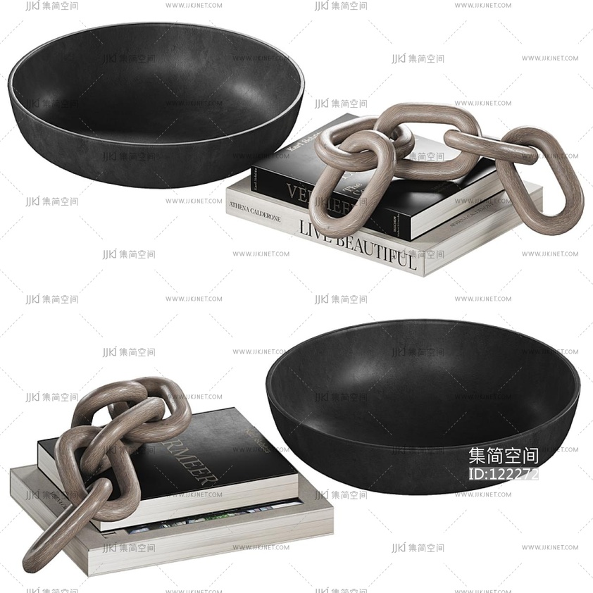 装饰茶几套装书籍摆件 3d模型下载 [模型ID:122272]