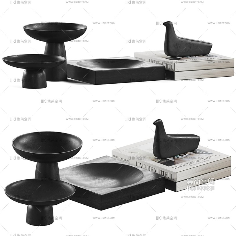 装饰茶几套装,书籍书本,茶几摆件 3d模型下载 [模型ID:122281]