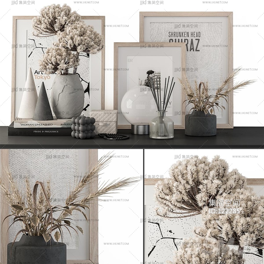 花瓶和植物装饰套装,花瓶,相框 3d模型下载 [模型ID:122285]