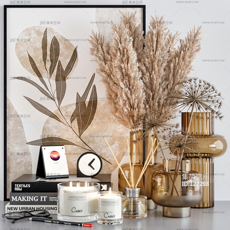 现代轻奢饰品摆件干花花瓶蜡烛 3d模型下载 [模型ID:122298]
