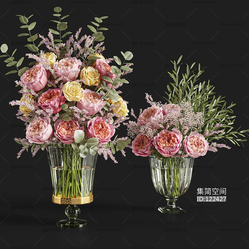 花瓶花艺_玻璃花瓶_插花欧式花瓶插花3D模型3d模型下载