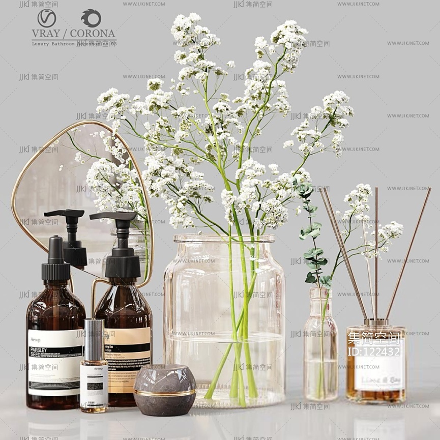 豪华浴室配件,洗漱用品玻璃花瓶 3d模型下载 [模型ID:122432]