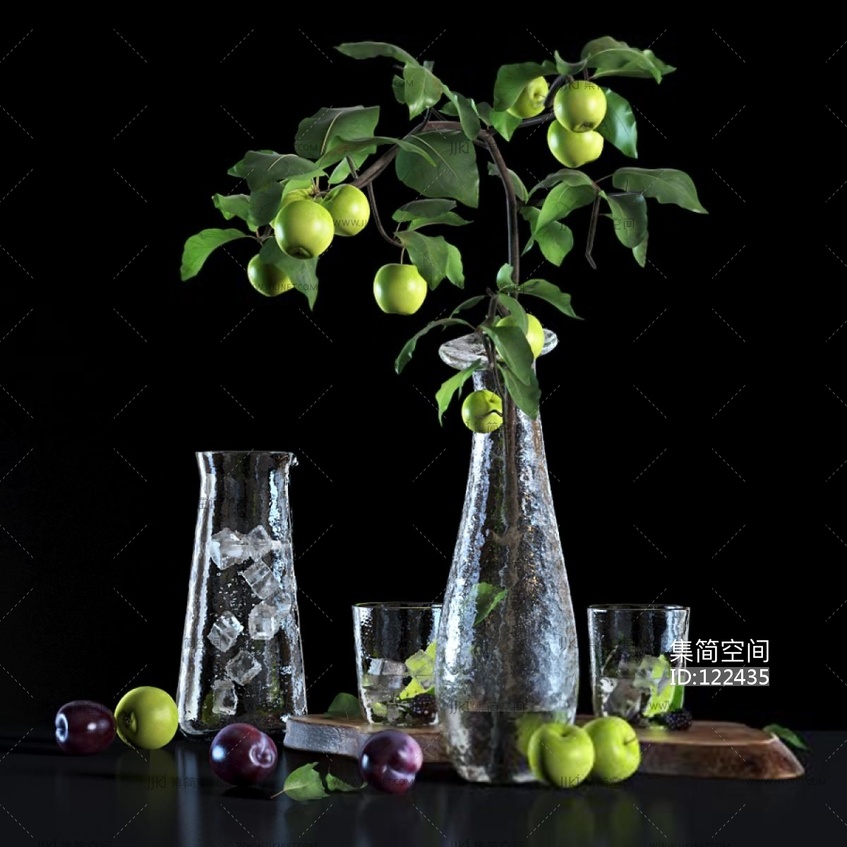 现代玻璃花瓶水果,玻璃花瓶果盘 3d模型下载 [模型ID:122435]