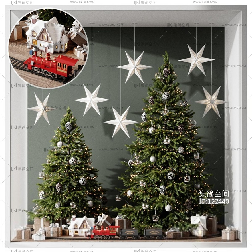 现代圣诞树装饰橱窗,小火车礼品盒 3d模型下载 [模型ID:122440]