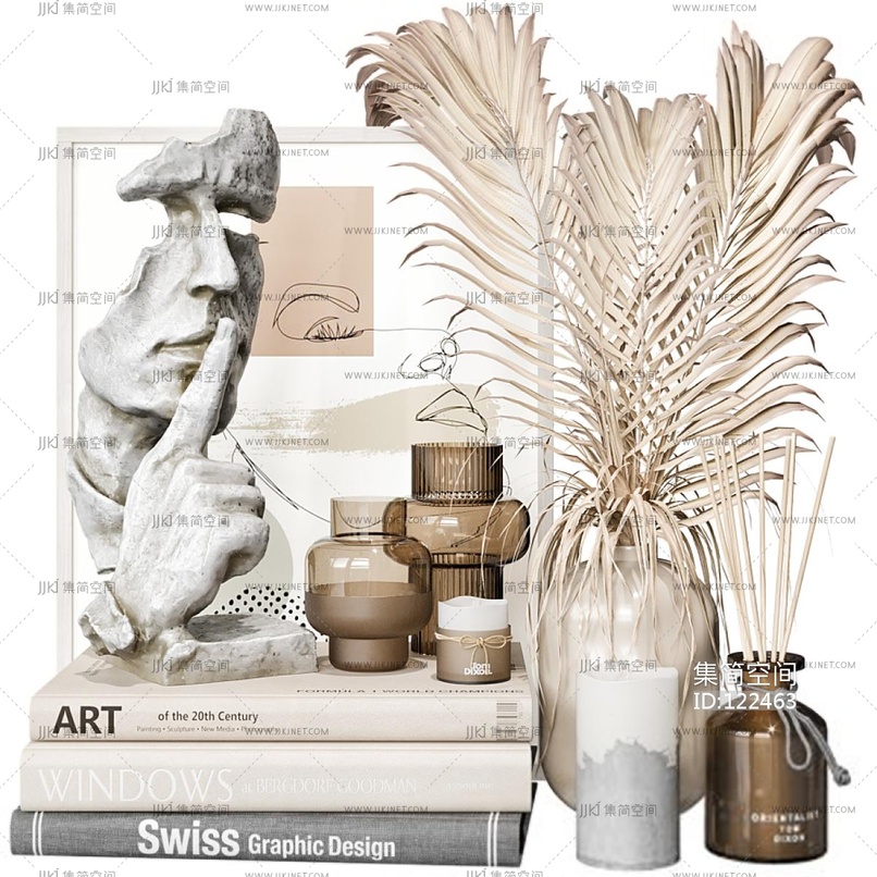 现代饰品摆件,书籍书本花瓶人面雕塑 3d模型下载 [模型ID:122463]