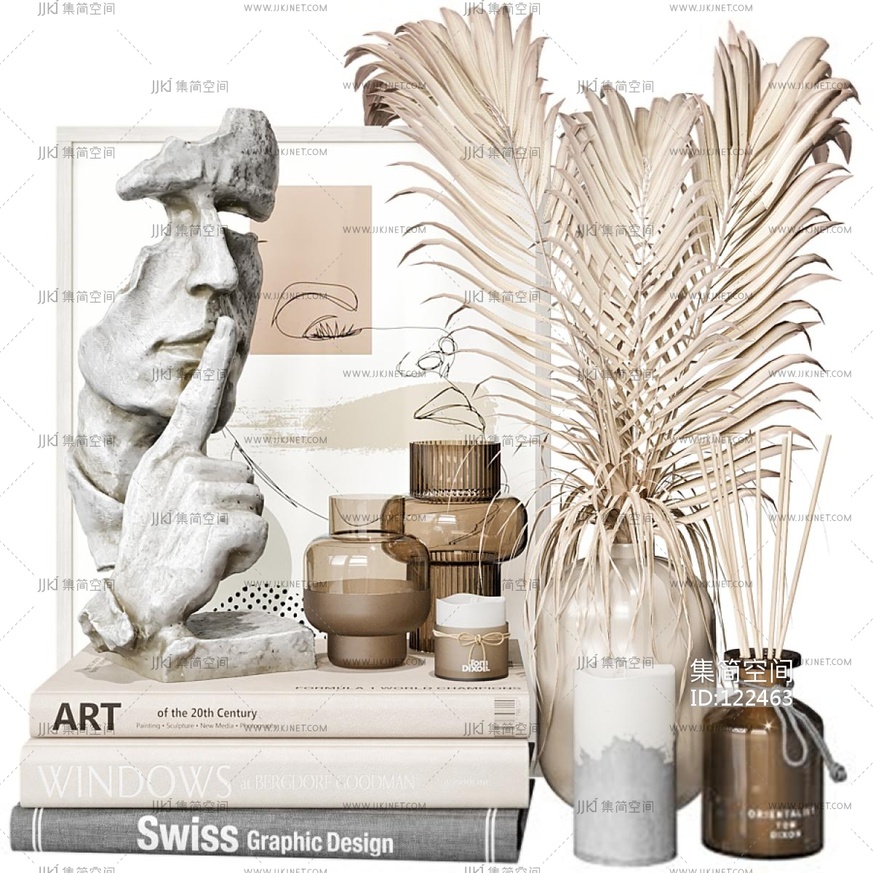 现代装饰品摆件_书籍_花瓶3D模型3d模型下载