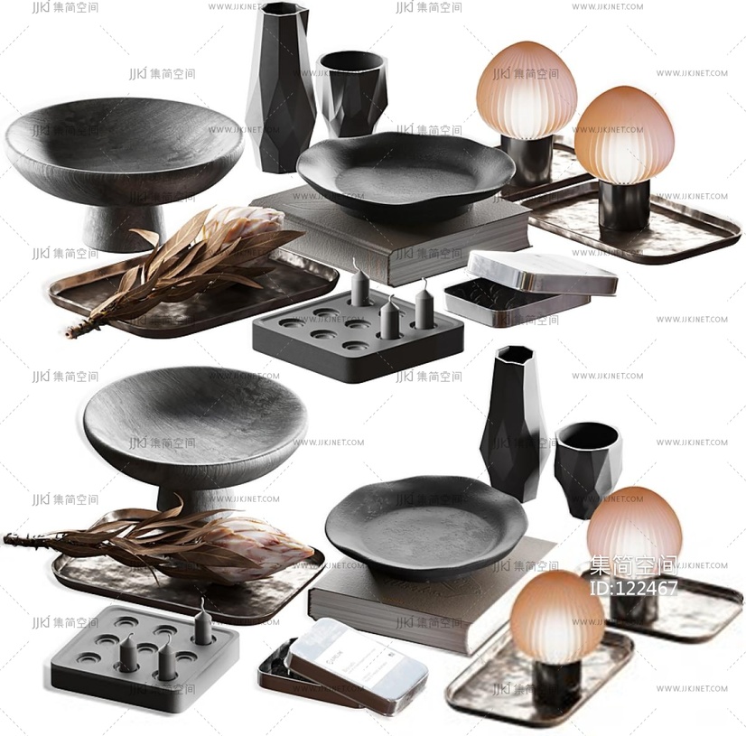 现代新中式雕塑摆件_饰品摆件组合3D模型3d模型下载