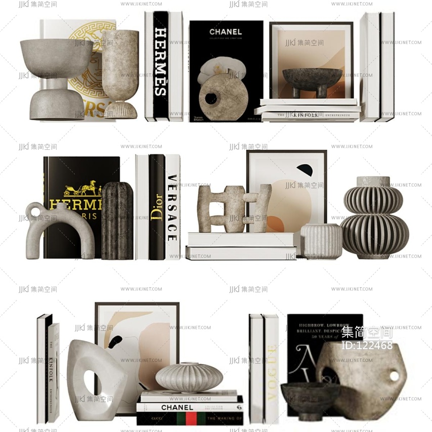 现代装饰品摆件_书籍_花瓶3D模型3d模型下载