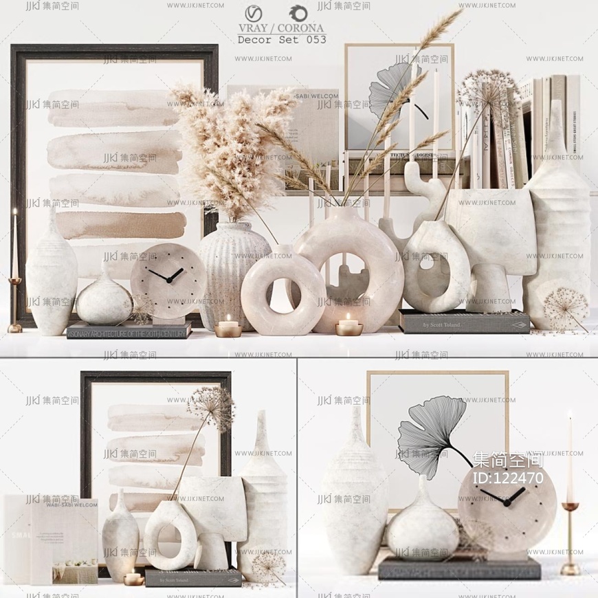 现代装饰品摆件_书籍_花瓶3D模型3d模型下载