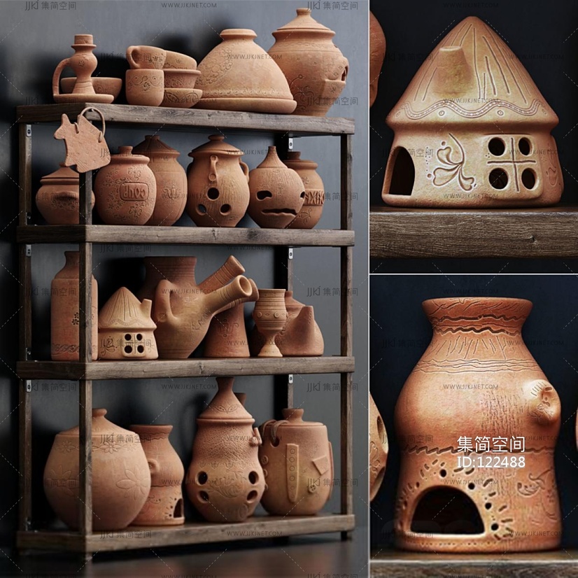 北欧陶罐器皿摆件,陶土罐子 3d模型下载 [模型ID:122488]