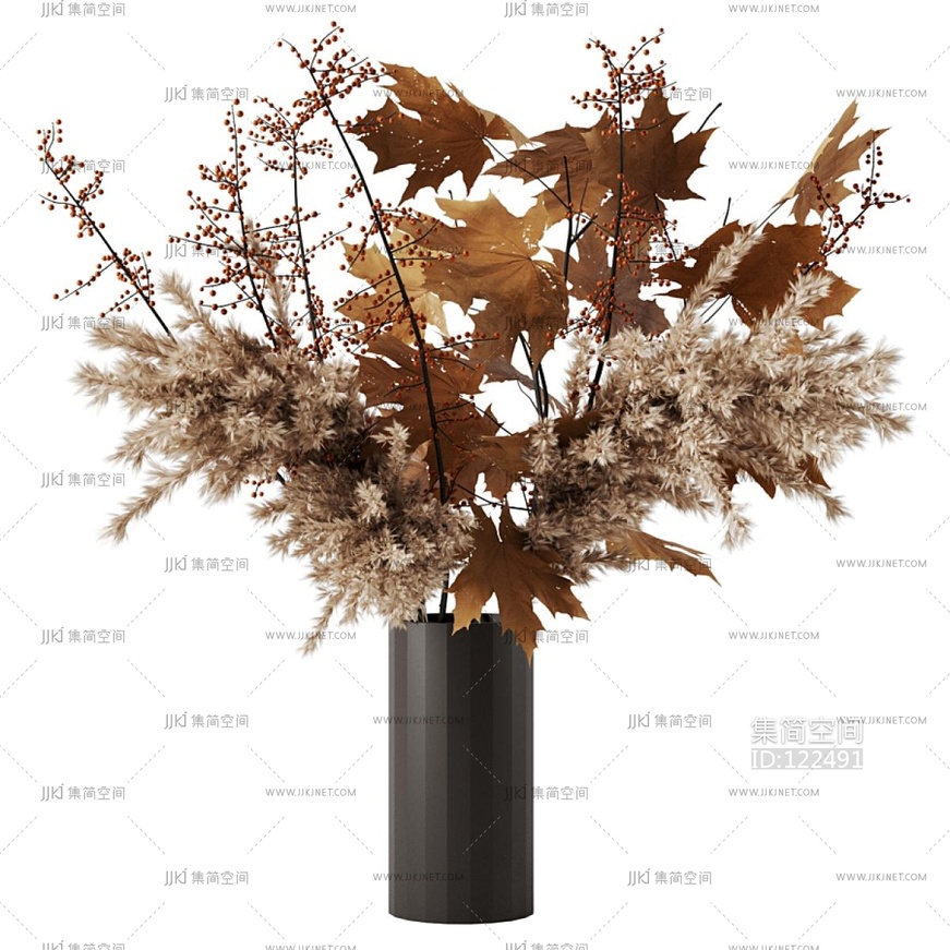 青瓷花盆中的树枝花束,植物插画3D模型cr3d模型下载