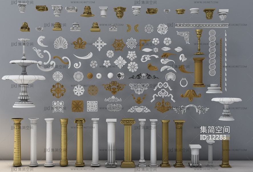 Z07-11277欧式罗马柱柱头 3d模型下载 [模型ID:12283]