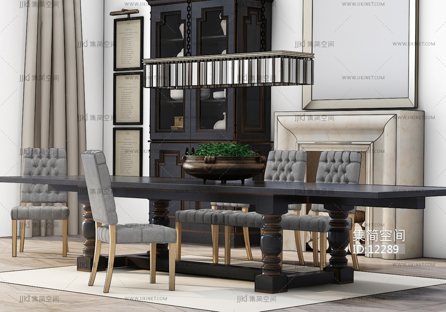 Z16-1127美式餐桌椅吊灯组合酒柜 3d模型下载 [模型ID:12289]