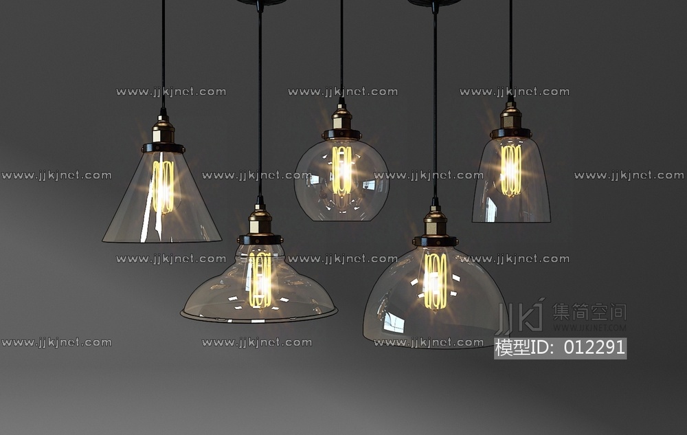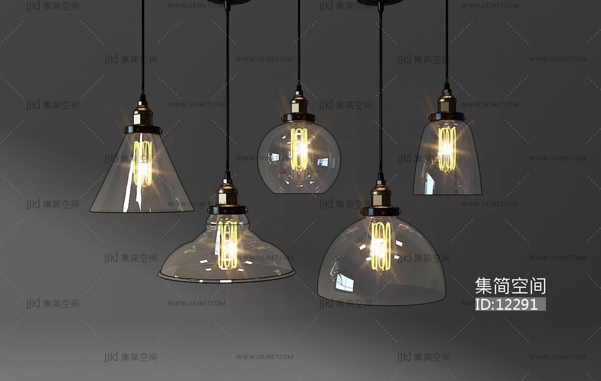 Z18-1127复古loft工业玻璃吊灯 3d模型下载 [模型ID:12291]