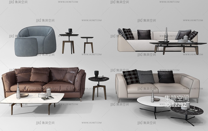 Z19-1127现代沙发组合 3d模型下载 [模型ID:12292]