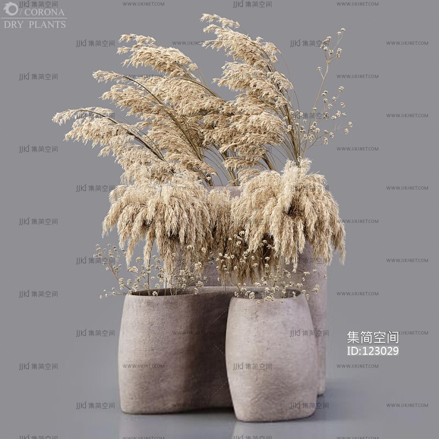 侘寂干花花瓶花艺,陶罐干花v 3d模型下载 [模型ID:123029]